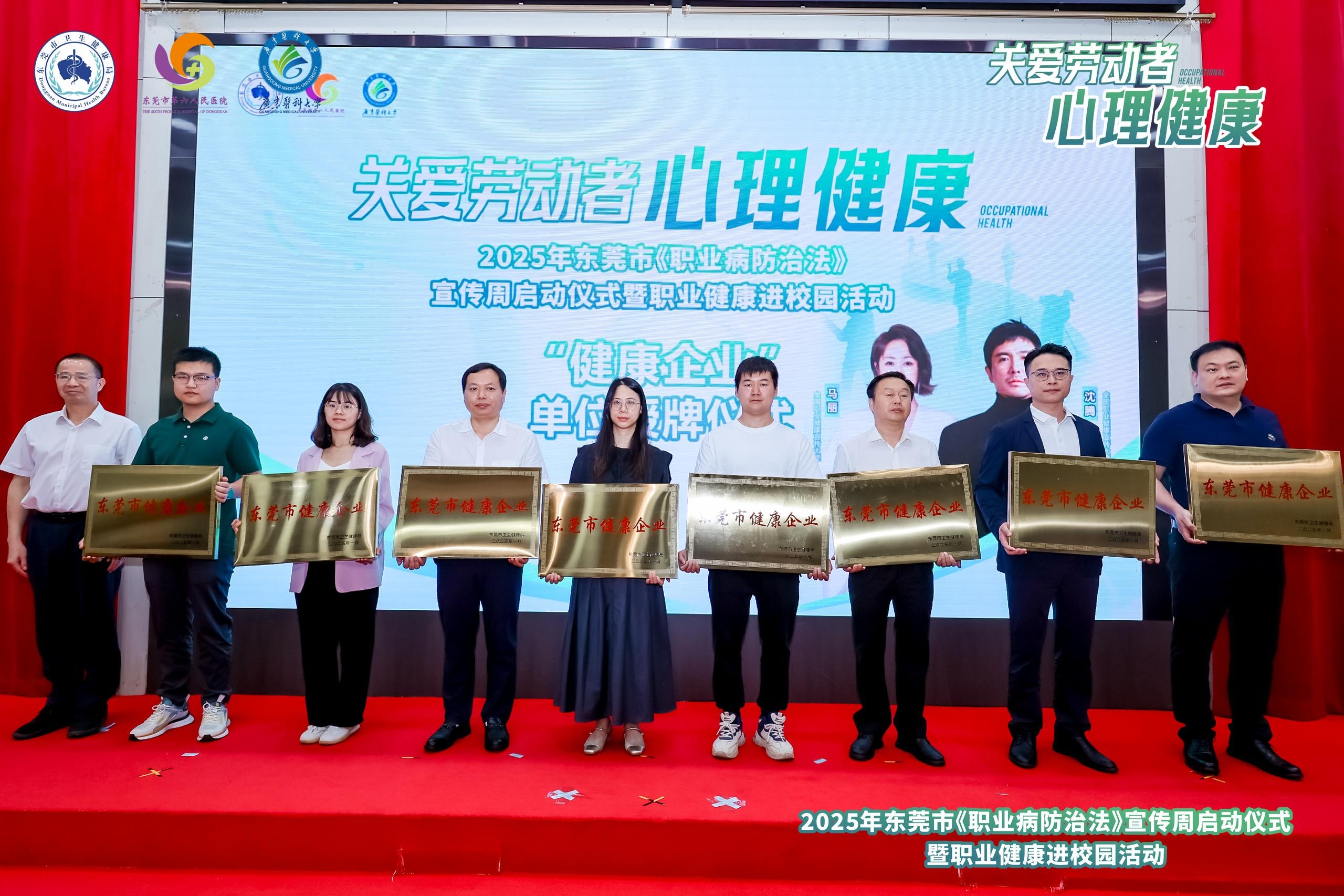 4月25日,東莞市衛生健康局在東莞市組織開展“2025年《職業病防治法》宣傳周啟動儀式暨職業健康進校園”主題活動。華潤東莞醫藥有限公司作為行業代表受邀參加,并憑借在健康企業建設中的優秀表現,榮獲“2024年度東莞市健康企業”榮譽稱號。