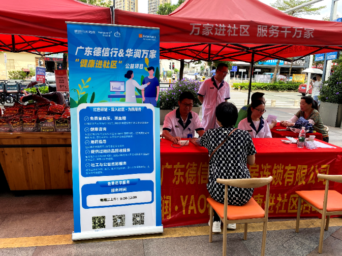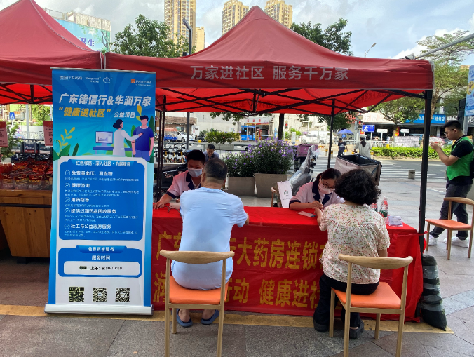 8月22日,廣東德信行大藥房連鎖有限公司聯合華潤深圳醫藥、華潤萬家、春暖社工開展“潤•YAO 健康進社區”活動,走進深圳下水徑社區為居民提供免費藥學服務活動,共有7名志愿者參與活動。