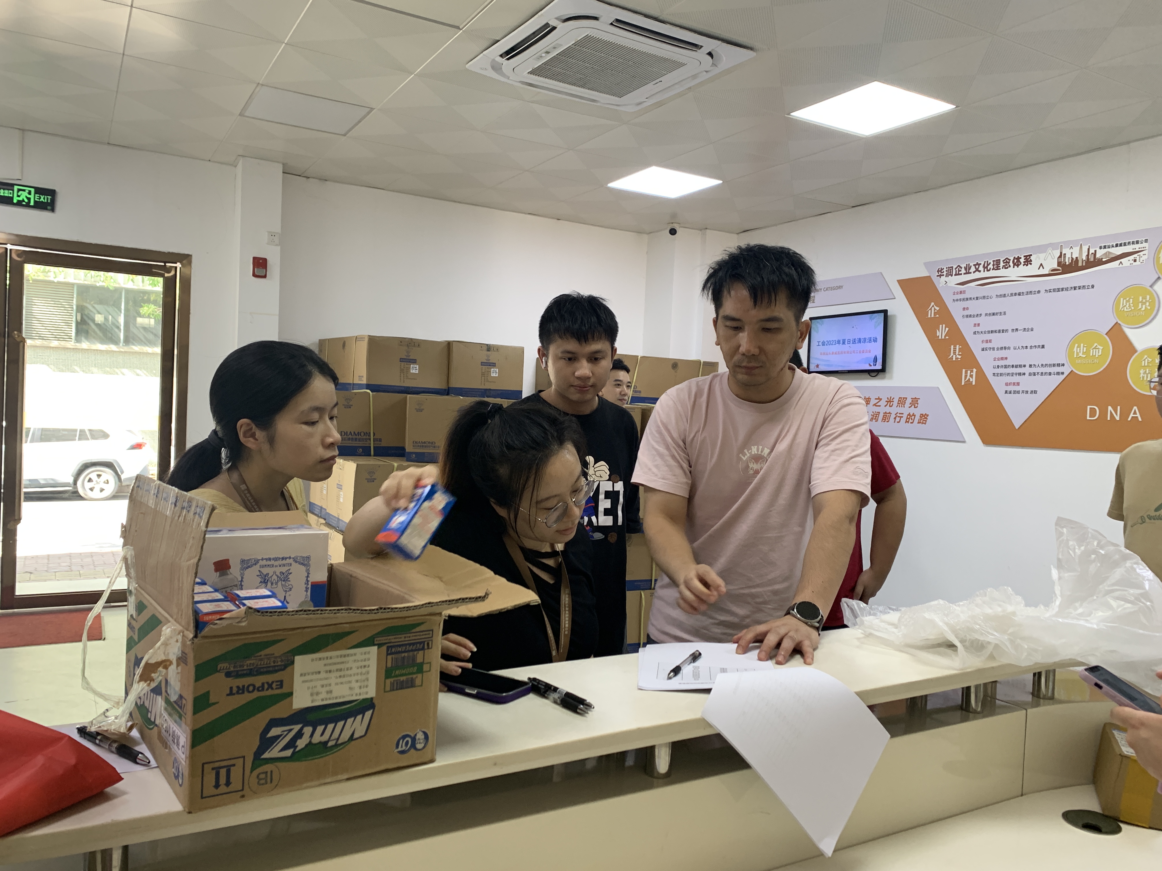 2023年8月30日,工會(huì)委員會(huì)成員將“清涼物品”送到全體工會(huì)會(huì)員手中,工會(huì)主席向外勤工作人員致以真誠(chéng)的問(wèn)候及感謝,并叮囑他們要增強(qiáng)自我防護(hù)意識(shí),注意防暑降溫。