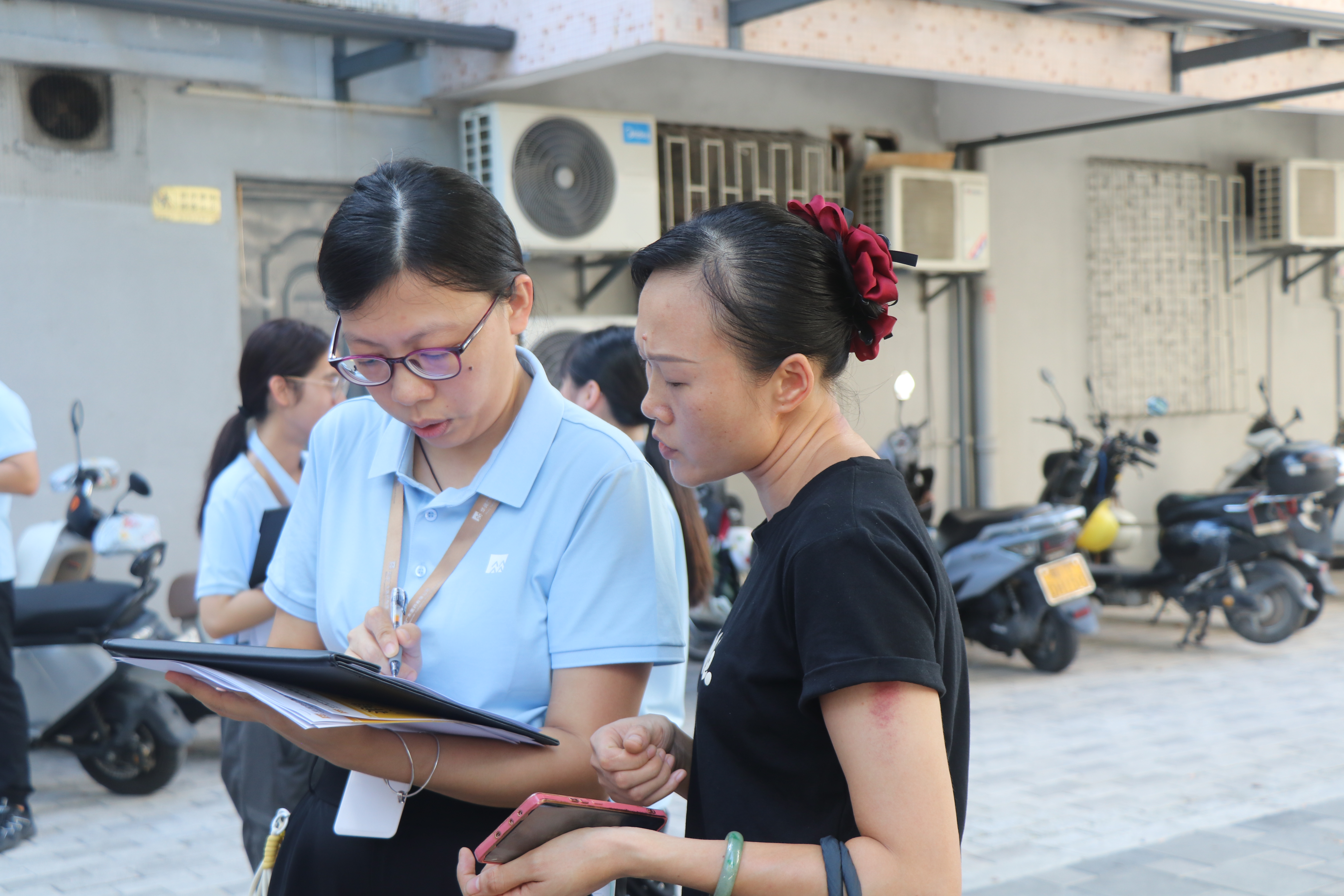 活動(dòng)當(dāng)天,華潤(rùn)中山醫(yī)藥總經(jīng)理杜卓強(qiáng)為本次“潤(rùn)•YAO行動(dòng)”作啟動(dòng)致辭,隨后攜一行人前往洪家基正街小區(qū)?;顒?dòng)現(xiàn)場(chǎng),桌上擺放了藥品安全知識(shí)的宣傳單張,團(tuán)隊(duì)中的執(zhí)業(yè)藥師也為現(xiàn)場(chǎng)的居民提供血壓測(cè)量的免費(fèi)服務(wù),并用通俗易懂的語言為他們講解日常用藥知識(shí)、過期藥品處理的正確方法等關(guān)鍵知識(shí)。與此同時(shí),其他同事向現(xiàn)場(chǎng)居民發(fā)放問卷調(diào)查,精準(zhǔn)掌握他們?nèi)粘S盟?、處理過期藥物的情況,為后續(xù)開展針對(duì)性健康服務(wù)提供依據(jù)。