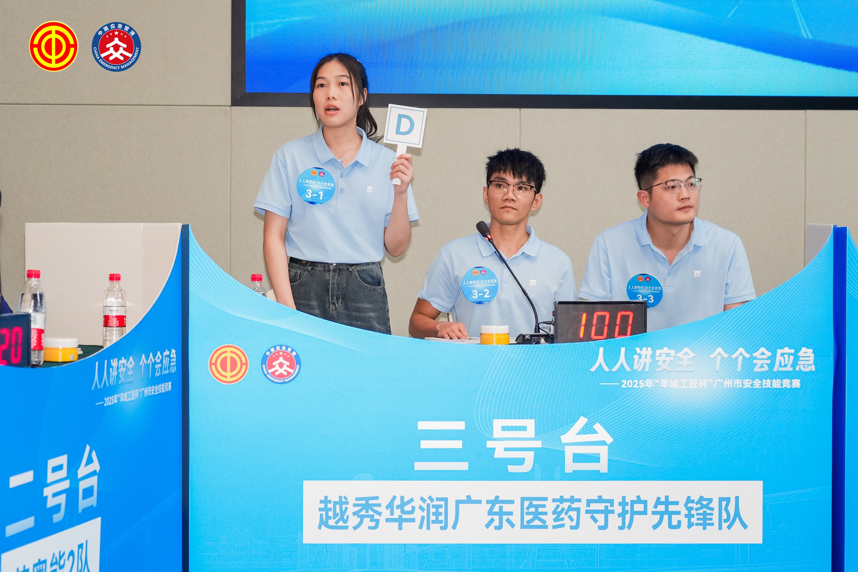 在10月23日至24日舉辦的2025年“羊城工匠杯”廣州市安全生技能大賽中,華潤廣東醫藥有限公司代表隊發揮出色,以初賽第一名的驕人成績從99支參賽隊伍中脫穎而出,成功晉級決賽。在決賽的激烈角逐中,憑借出色的發揮榮獲三等獎,充分展現了公司扎實的安全管理基礎和員工過硬的安全知識技能素養。