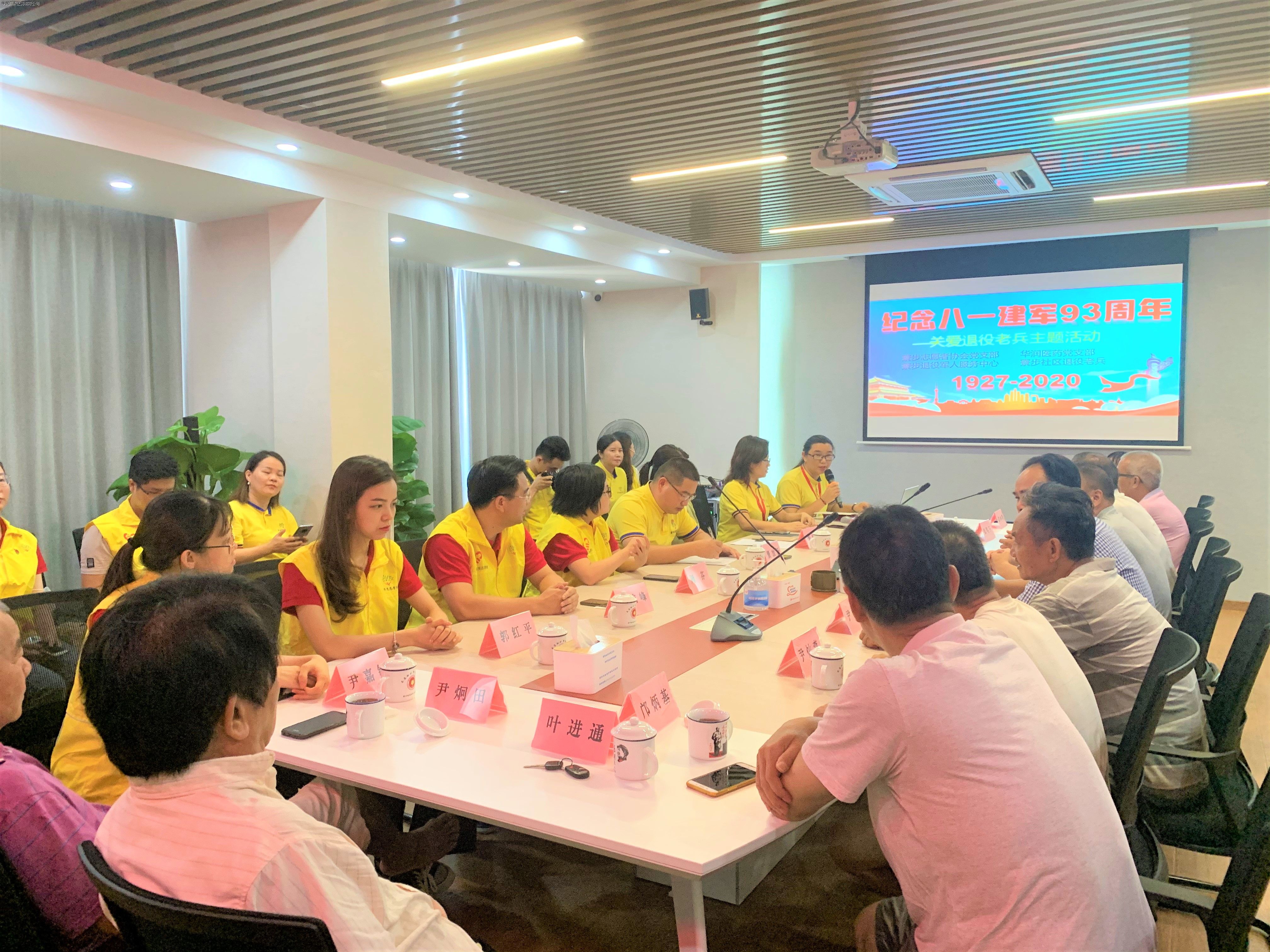 恰逢八· 一建軍節(jié)來臨之際,為繼承和發(fā)揚(yáng)老一輩無產(chǎn)階級革命家優(yōu)良傳統(tǒng)及紅色基因,同時弘揚(yáng)華潤紅色文化,2020年7月26日上午,華潤東莞醫(yī)藥有限公司黨支部牽頭聯(lián)合寮步鎮(zhèn)志愿者協(xié)會黨員志愿服務(wù)隊于寮步鎮(zhèn)退役軍人服務(wù)中心開展關(guān)愛退役老兵座談會活動。出席本次活動的有華潤東莞醫(yī)藥黨支部書記周芬、華潤東莞醫(yī)藥總經(jīng)理李偉峰、寮步鎮(zhèn)志愿者協(xié)會黨支部書記董放新、寮步鎮(zhèn)退役軍人服務(wù)中心副主任李敏怡、退役老兵葉進(jìn)通、尹齊興等10人和各黨支部黨員、入黨積極分子等。